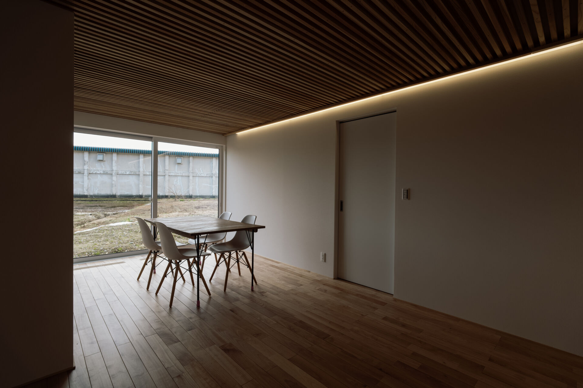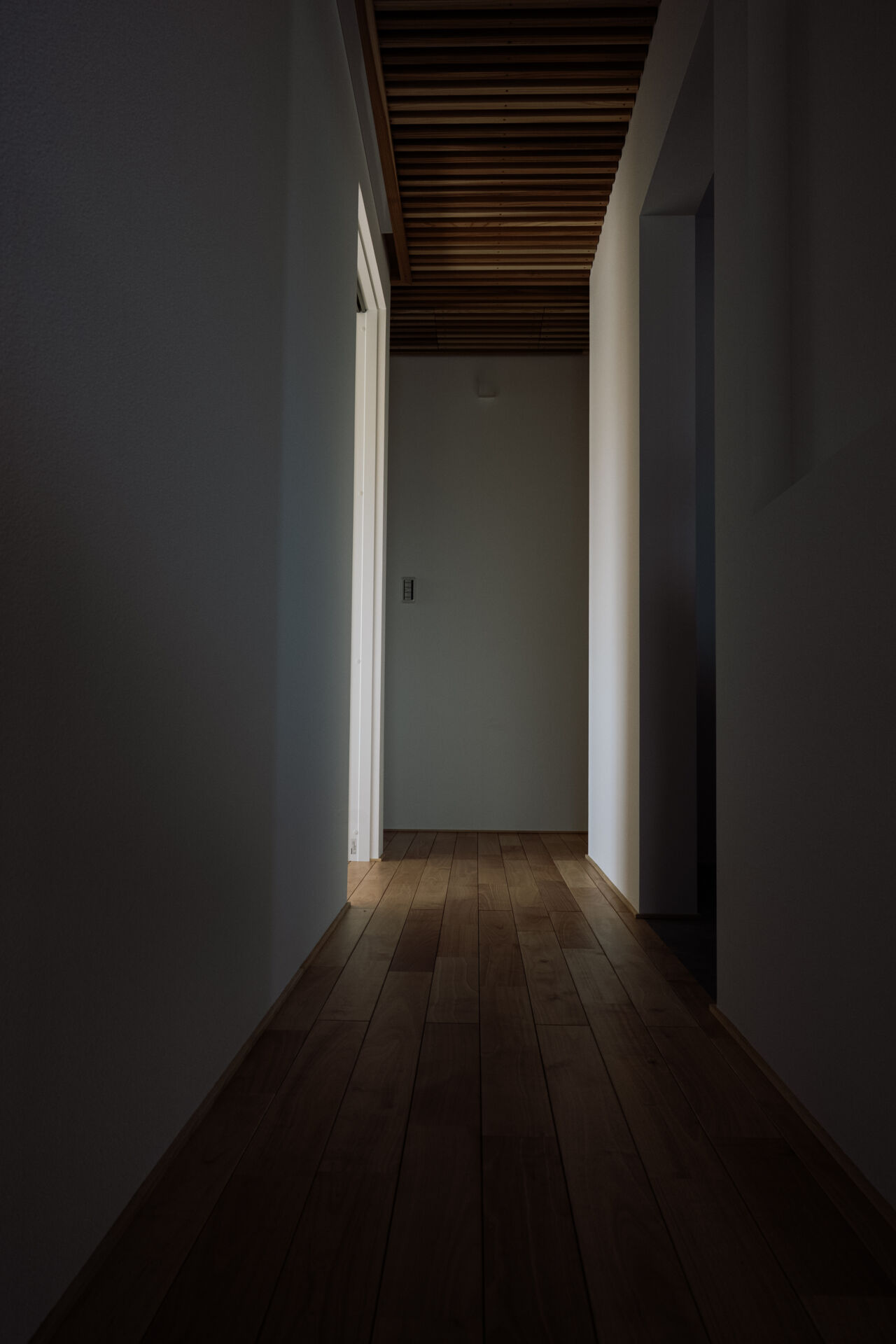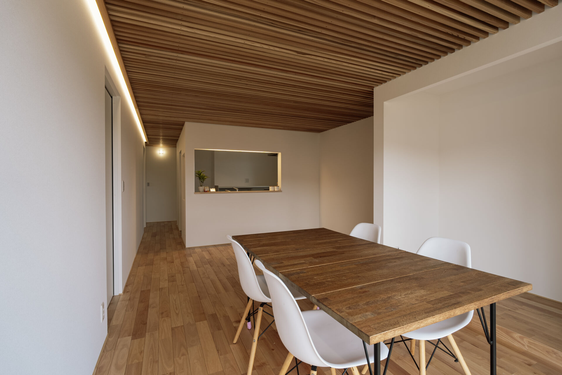 木と木の隙間から空調冷房の涼しい風が吹きおろし部屋全体だけでなく、家全体が涼しくなる計画にしています。
