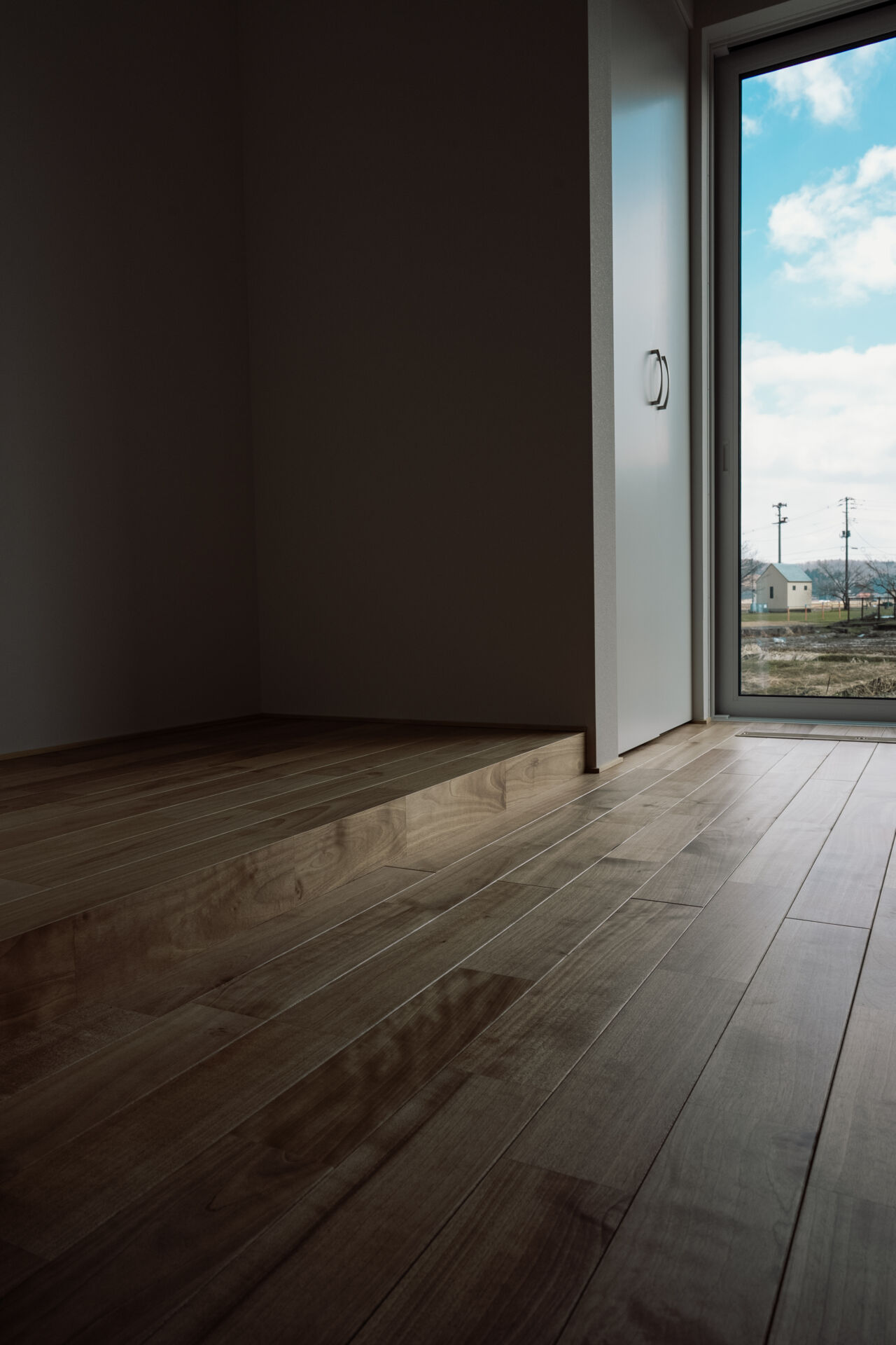 床には見た目も触り心地も良いカバの無垢フロアーを採用しました。