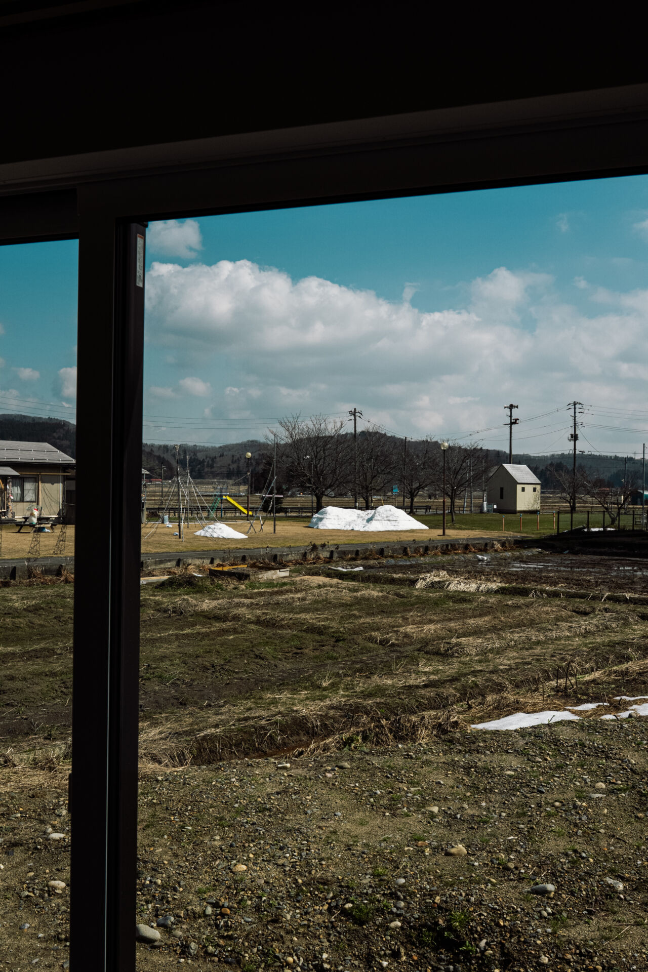 居間の窓からは公園の桜並木と美しい粟ヶ岳が目前に広がります。